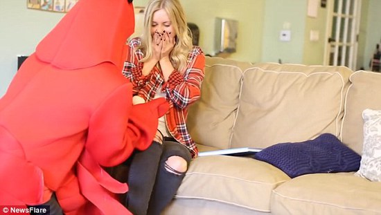 就在这时,她的男朋友Joe把自己打扮成了书中的那只龙虾,突然出现在教室门口。