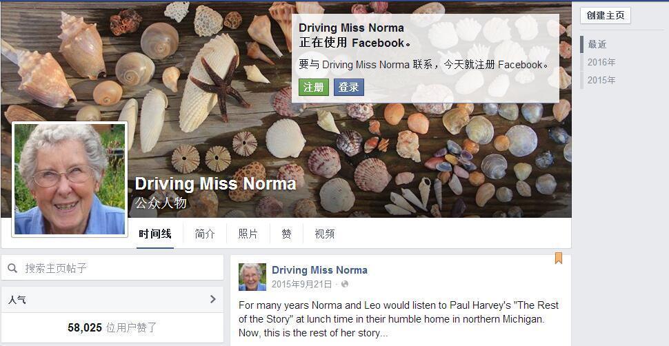 医生们吃惊地看着Norma奶奶,并向她的儿子、媳妇征求意见,他们都表示会支持Norma的决定。就这样,90岁的Norma踏上了她的冒险旅程,并在FB上名为Driving Miss Norma(跟Norma一起开车看世界)的主页记录这一切。