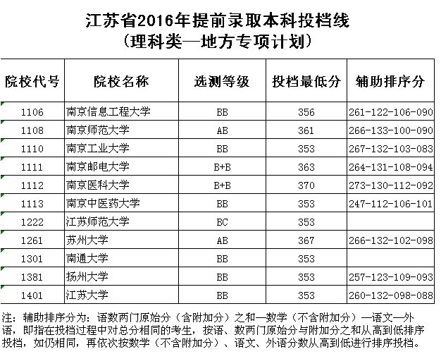 志愿是关乎每个学生命运前途的事情,望各位考生能谨慎对待,2016江苏文理科类提前录取 本科院校投档线表格一览(地方专项计划)希望对您有帮助哦!