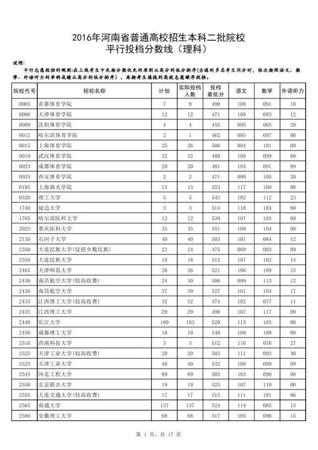 2016河南高招一本投档线出炉 本一院校平行投档分数线一览(图表)超650分的学校有哪些?超过一本线100分的院校盘点 理科投档..…