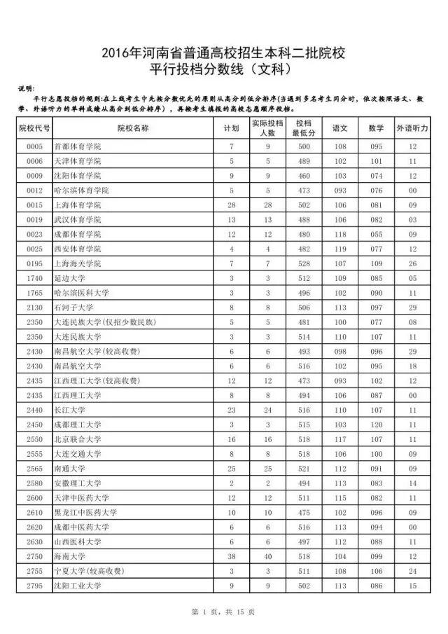 2016年河南省本二批投档线新鲜出炉,文理科投档分数线一览表,全国每个大学在河南招录的最低分数线是多少呢?
