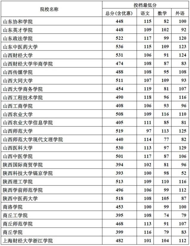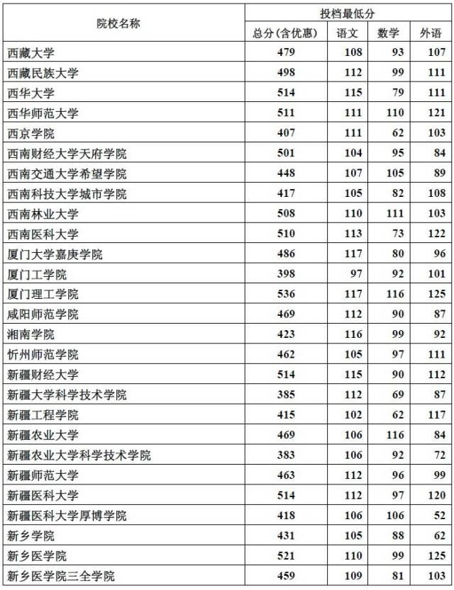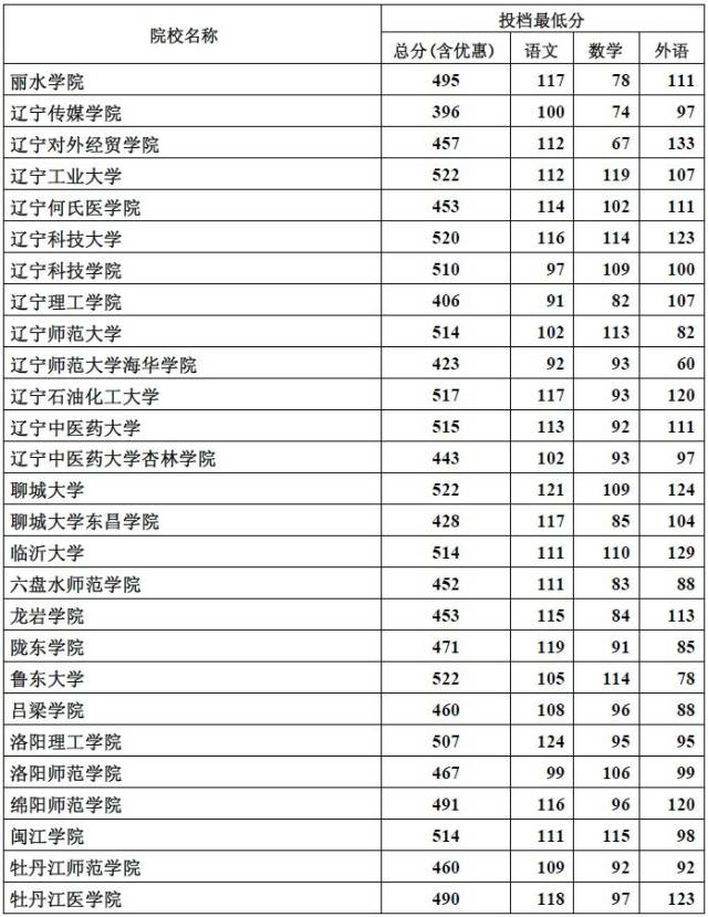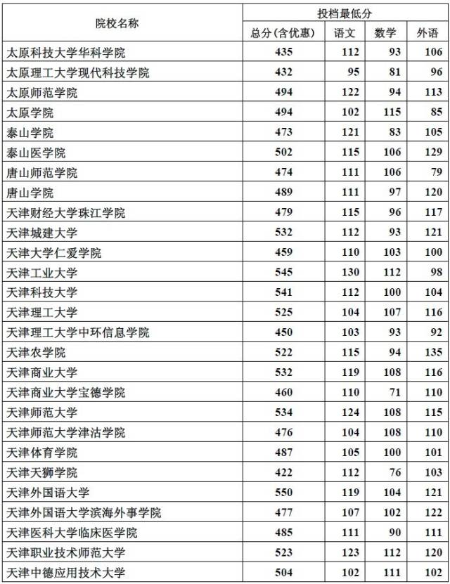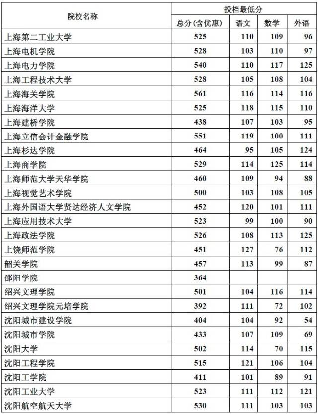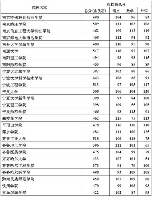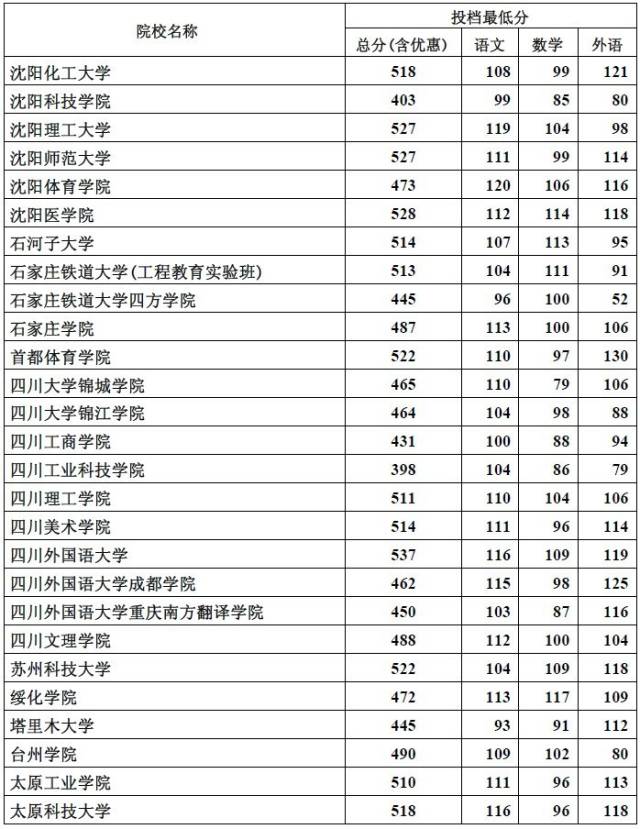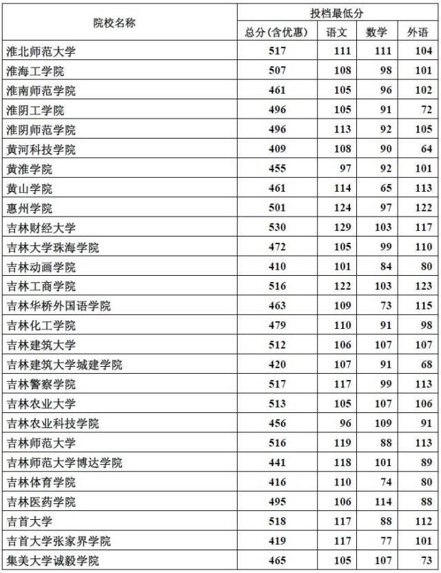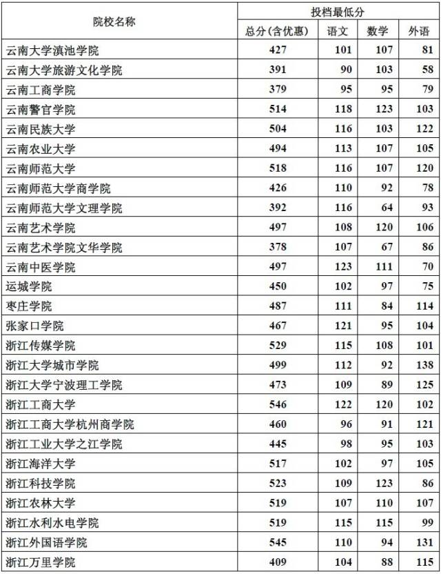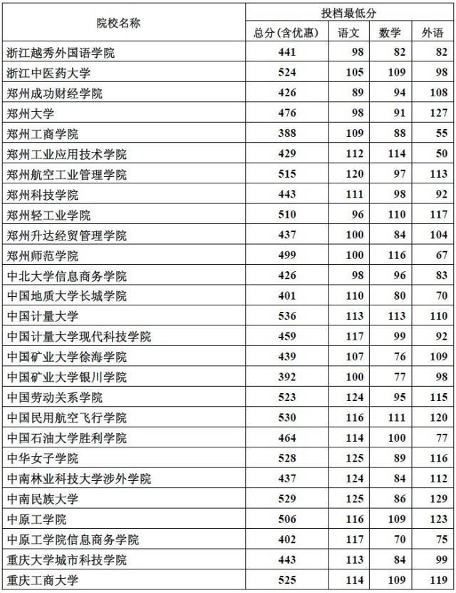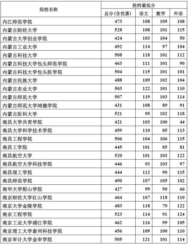 1、投档最低分中所列出的语、数、外单科成绩,是投档时若总分相同依次比对语、数、外各科成绩而产生的单科投档最低分。