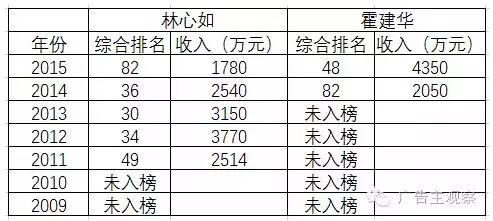 在去年(2015年)的福布斯中国名人榜上,林心如综合排名第82位,收入为1780万元。而霍建华以4350万元的收入居第48位。