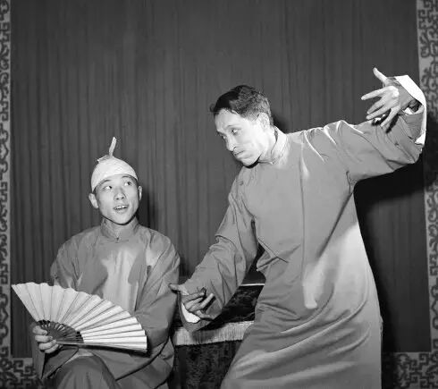 1961年,常宝华(右)、常贵田叔侄二人合演相声《黄鹤楼》