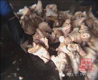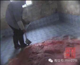 技术员:用刀划下的下脚料,杀猪的不要了。记者:你怎么用手搅拌呢?