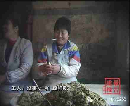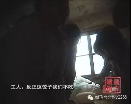 技术员:卫生,什么东西不是用手做出来的,吃的东西都是用手做出来的。操作台上落满了灰尘,工人只是擦擦了事。这里的生产过程完全是手工操作。用来生产饺子的双手,工人也懒得洗洗。